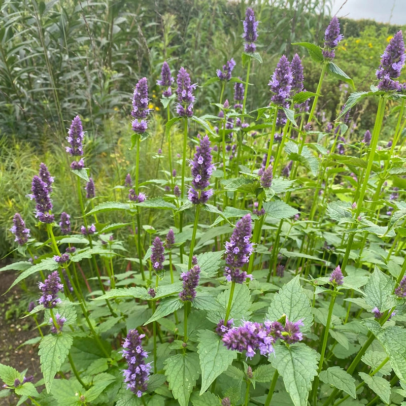 Long after other varieties have faded, Black Adder Anise Hyssop keeps growing and blooming. Unique, smoke-plum, bottlebrush plumes appear in midsummer to give borders and naturalized areas a wonderful splash of late-season colour. This versatile, drought-tolerant bloomer is also excellent in cutting gardens and makes a fantastic dried flower. One of the easiest and most rewarding perennials to grow. Attractive to butterflies and hummingbirds. Drought tolerant.